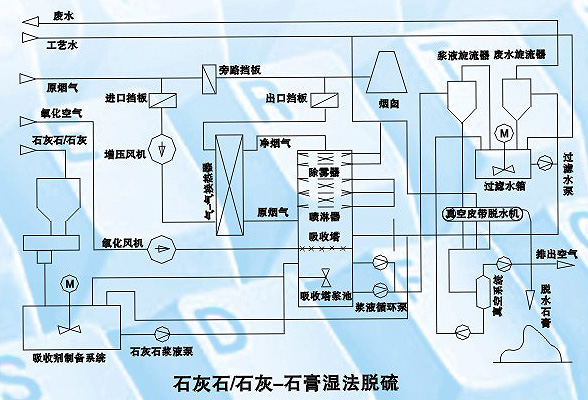石灰石-石灰湿法烟气脱硫技术由于吸收剂来源广泛、价廉易得、成本低,是世界上普遍,技术成熟,运行可靠的脱硫工艺;主要用于大型工业脱硫装置。该法以石灰石或石灰浆液作脱硫剂,在吸收塔(或称脱硫塔)内与含有SO